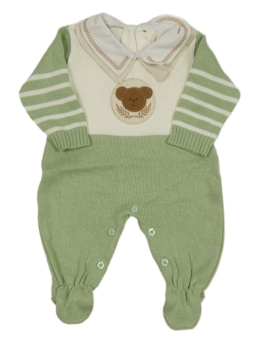 Zeleno-biely pletený overal s medvěďom a pruhovanymi rukávy