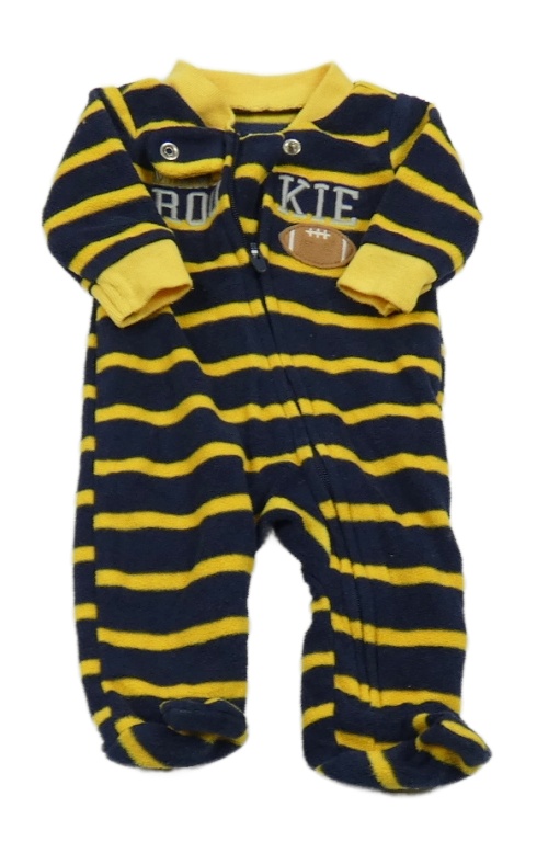 Tmavomodro-žltý pruhovaná fleecový overal s nápisom Carter's