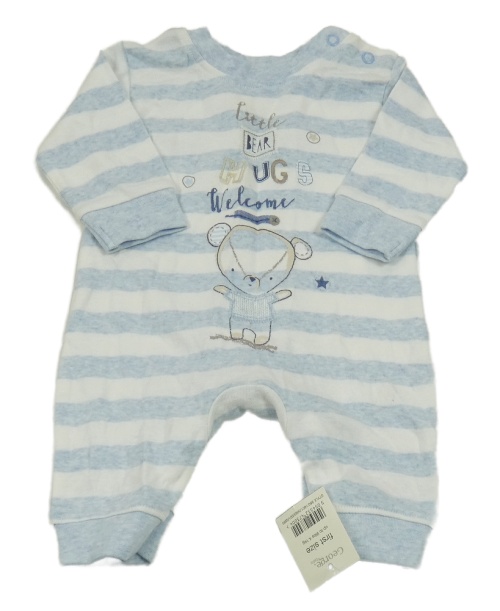 Nové - Modro-biely pruhovaný overal s nápisom a medvěďom George