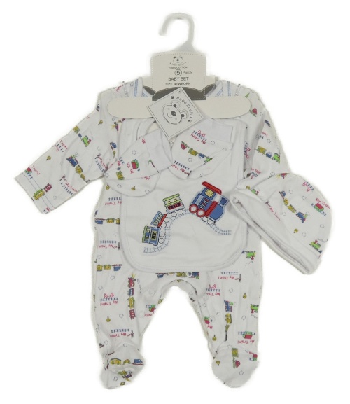 Nové - 4 set - biely overal s auty + bryndák + rukavice + čapica