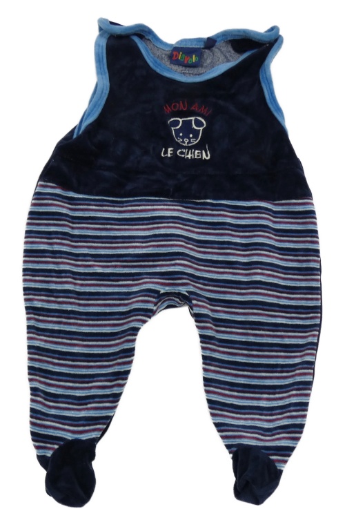 Tmavomodro-pruhovano-modré sametové dupačky s myškou a nápismi