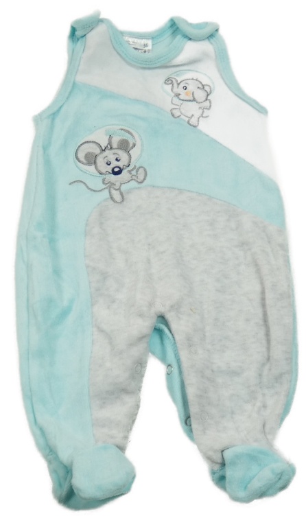 Světlemodro-světlešedo-bílé sametové dupačky so slonom a myškou Ergee