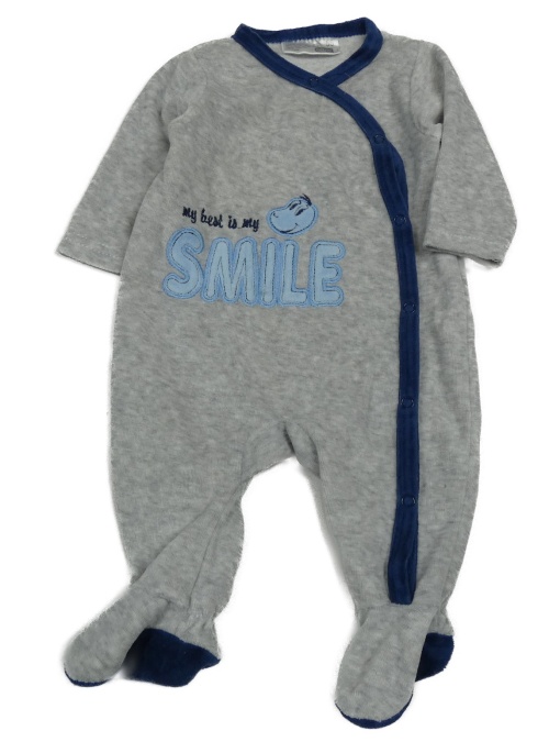 Sivo-tmavomodrý melírovaný zamatový overal s nápismi Ergee