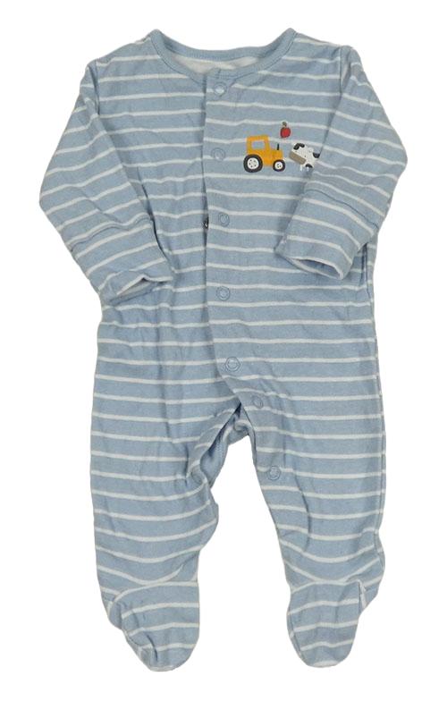 Světlemodro-biely pruhovaný overal s traktorom a krávou Matalan
