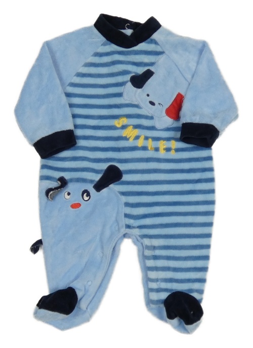 Modrý pruhovaný zamatový overal s pejsky