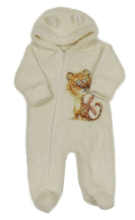 Smotanová chlpatá kombinéza s tigrom a kapucňou
