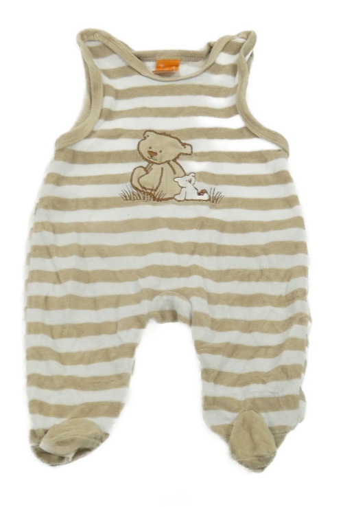 Bílo-béžové pruhované sametové dupačky s medvěďom