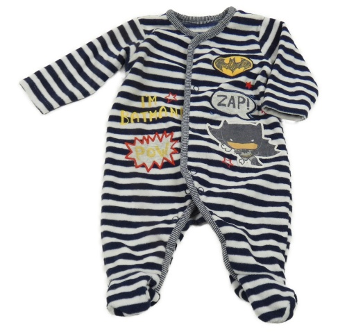 Tmavomodro-biely pruhovaný fleecový overal s Batmanem