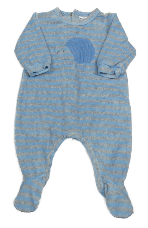 Modro-sivý pruhovaný zamatový overal s ježečkem tutto piccolo