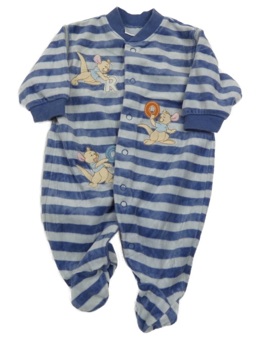 Sivo-modrý pruhovaný zamatový overal s klokánkem Rú Disney