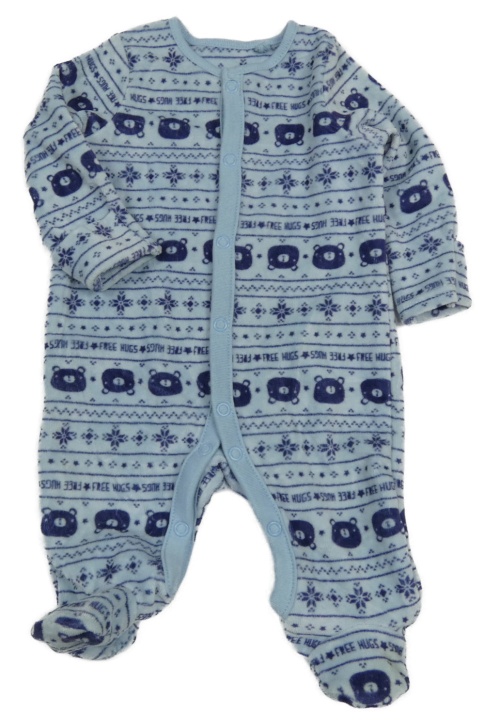 Světlemodro-tmavomodrý vzorovaný zamatový overal s medvedíkmi TU