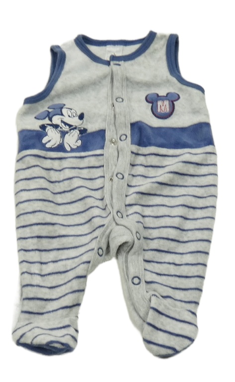 Šedé sametové dupačky s modrymi pruhmi a Mickeym C&A
