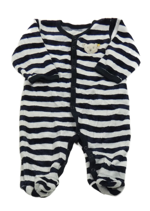 Čierno-biely pruhovaný zamatový overal s medvedíkom