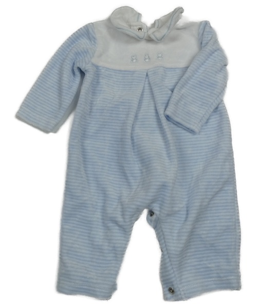 Světlemodro-biely pruhovaný zamatový overal s golierikom