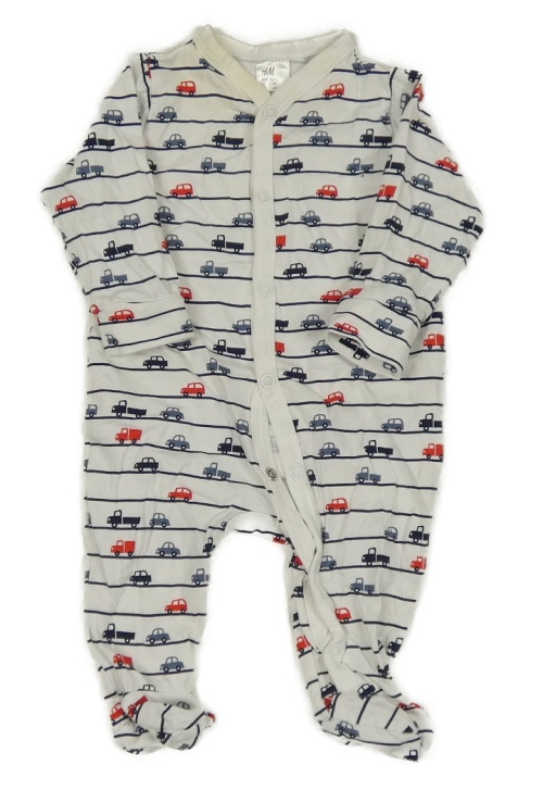 Bielo-tmavomodrý pruhovaný overal s autami H&M