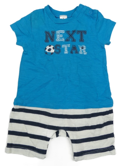 Modro-biely kraťasový overal s nápisom a futbalovým loptou Topomini