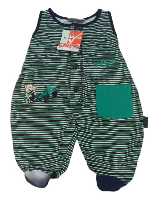 Nové - tmavomodro-zlené pruhované dupačky s medvedíkom Kik