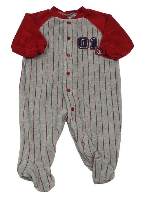 Sivo-červený pruhovaný melírovaný froté overal s číslom a pohárem carter's