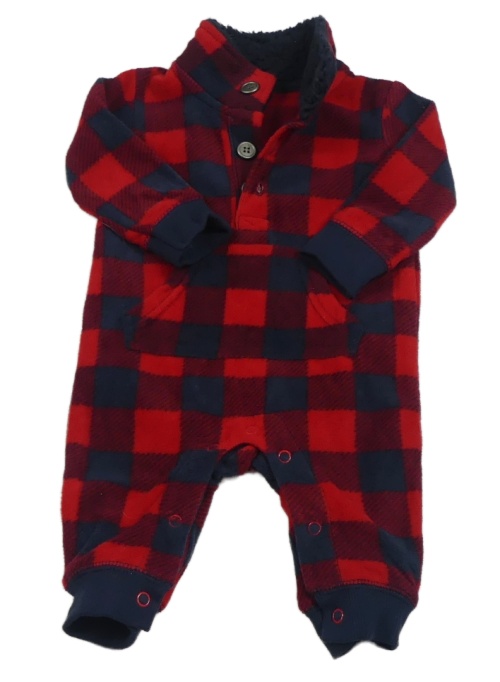 Tmavomodro-červený kockovaný fleecový overal Nutmeg