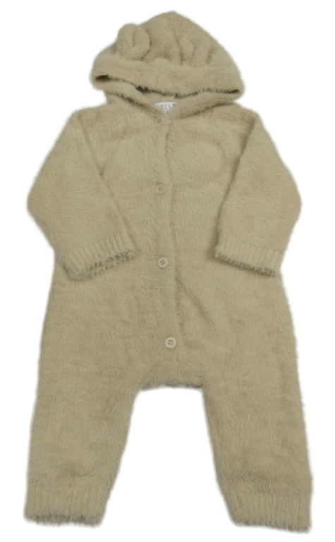 Béžová pleteno/chlupatá kombinéza s kapucňou