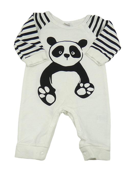 Bielo-čierny overal s pandou a pruhy na rukávech PatPat