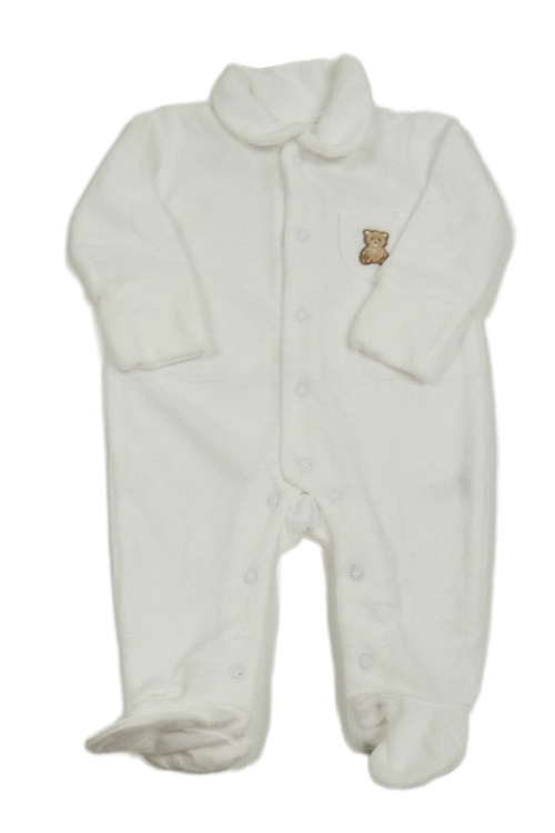 Biely zamatový rebrovaný overal s medvedíkom a golierikom George