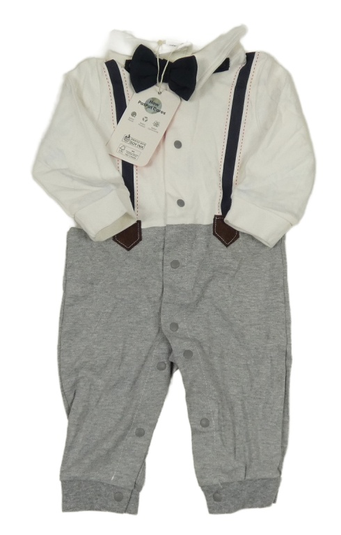 Nové - Bielo-sivý overal s tištěnými trakami a motýlkom PatPat