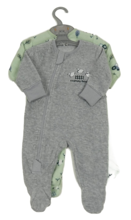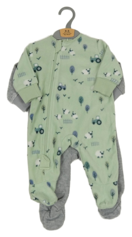 Nové - 2x fleecový overal - šedý melírovaný s ovcemi + světlezelený Dunnes