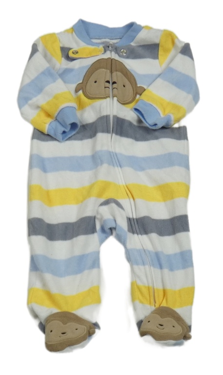 Bielo-modro-žltý pruhovaný fleecový overal s opicou Carter's