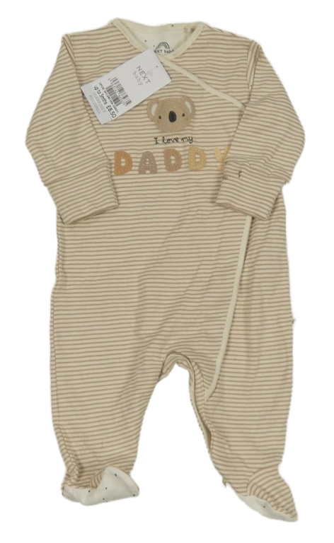 Nové - Smetanovo-hnedý pruhovaný overal s medvěďom Next