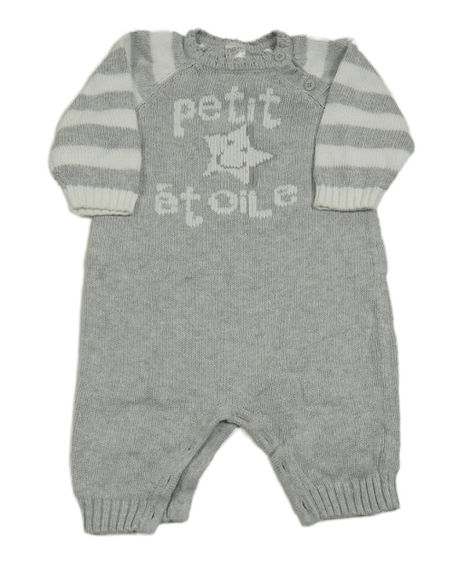 Sivo-biely pletený overal s nápisom a hviezdičkou Next
