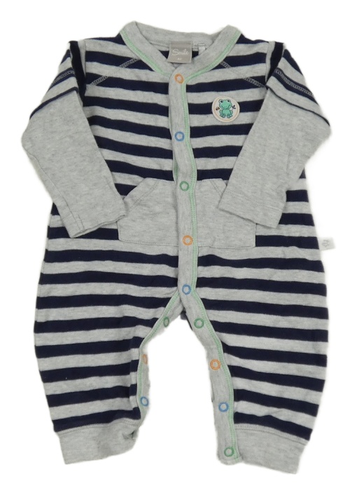 Tmavomodro-sivý pruhovaný overal so žabkou