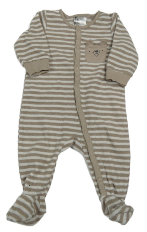 Béžovo-biely pruhovaný zamatový overal s medvedíkom H&M