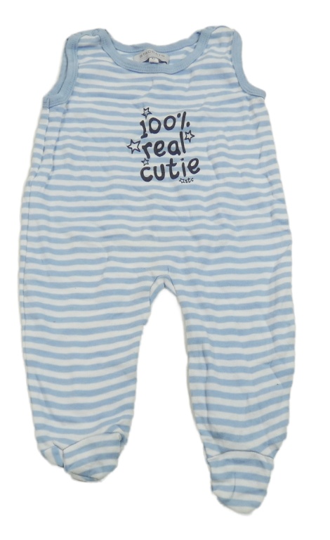 Světlemodro-bílé pruhované dupačky s nápisom a hviezdami