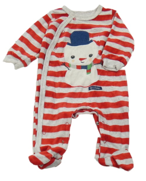 Svetlošedá -červený pruhovaný zamatový overal so sněhulákem Cool Club
