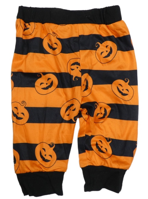 Čierno-oranžové pruhované ľahké tepláky s dýněmi