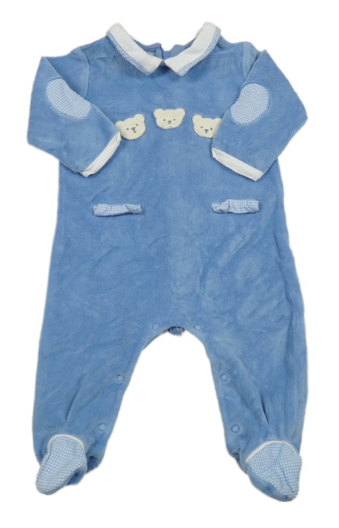 Modrý zamatový overal s medvedíkmi a golierikom Mayoral