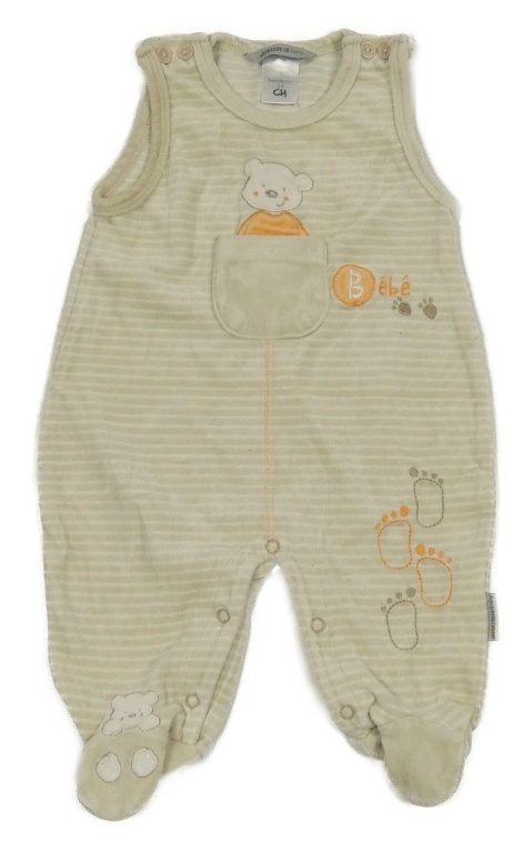 Béžovo-bílé pruhované sametové dupačky s medvěďom a vreckom