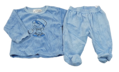 Světlemodré proužkované sametové triko + dupačky s chlapečkem Ergee