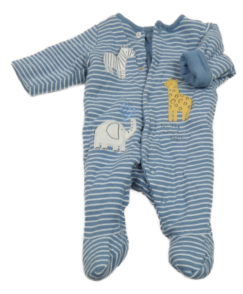 Svetlomodrý pruhovaný zateplený overal so zvířaty Tu