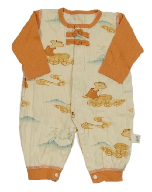 Smetanovo-oranžový rebrovaný overal s obrázkami