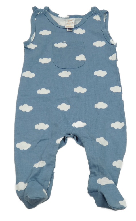 Modré teplákové dupačky s bielymi obláčiky a vreckom PUSBLU