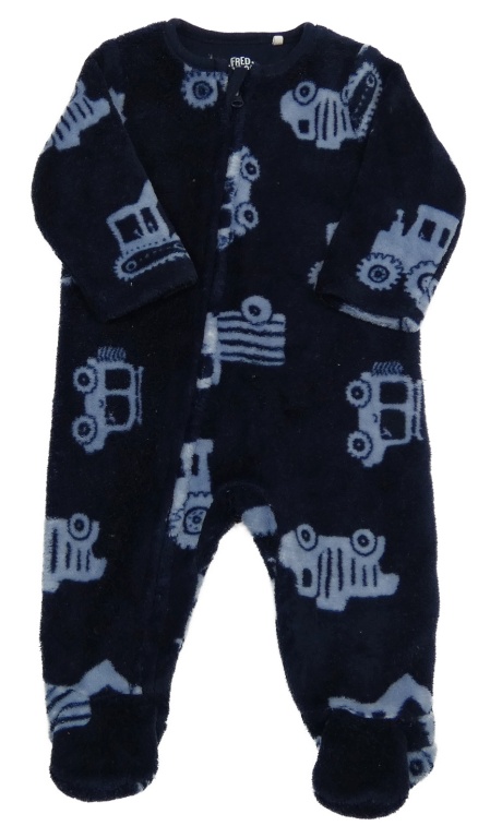 Tmavomodrý chlpatý overal s dopravními prostředky F&F