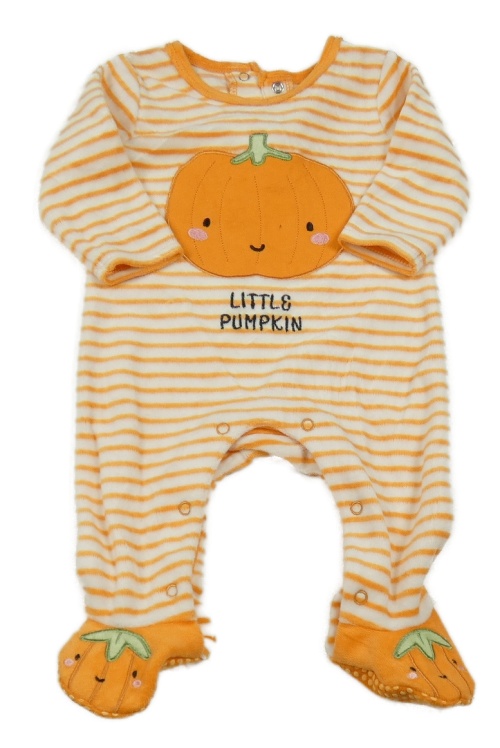 Bielo-oranžový pruhovaný zamatový overal s tekvicou