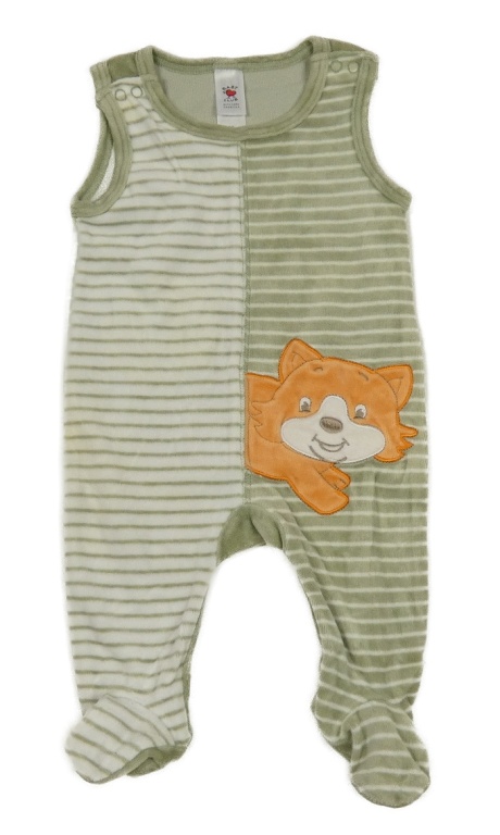 Zelenošedo-bílé pruhované sametové dupačky s líškou C&A