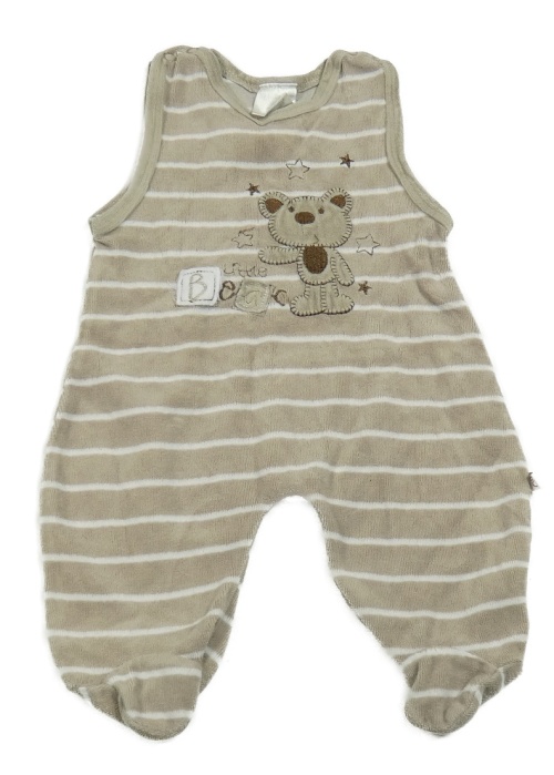 Béžové pruhované sametové dupačky s medvěďom
