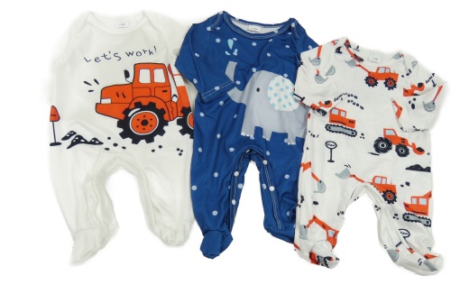 3x - Overal - Bílý s nákladním autem, so stavebními stroji, tmavomodrý so sloníkem a tečkami