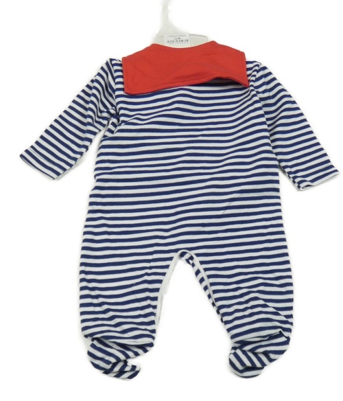 Nové - 2set - Bielo-tmavomodrý overal s kotvou a pruhy + šátek