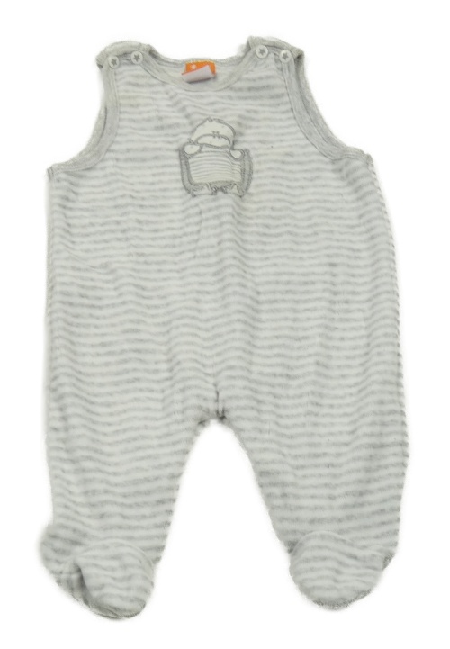 Bílo-šedé pruhované sametové dupačky s obrázkom