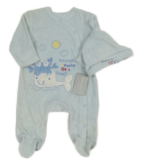 2set- -Nové modrý zamatový overal s obrázkem+ čapica Early Days